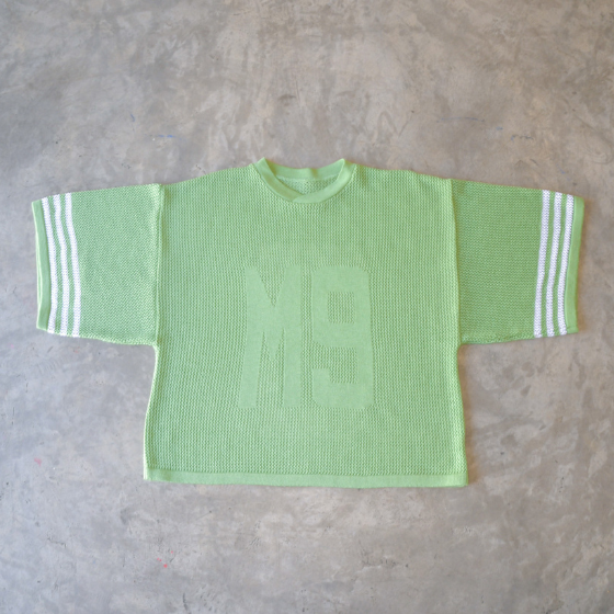 The Matcha Knitted Jersey features a boxy, slightly cropped silhouette crafted in a light open-knit texture that feels breathable and soft against the skin. The refreshing matcha tone brings a natural, grounded feel, complemented by beige detailing that enhances its relaxed yet structured aesthetic. A versatile piece that blends sporty ease with minimalist sophistication.